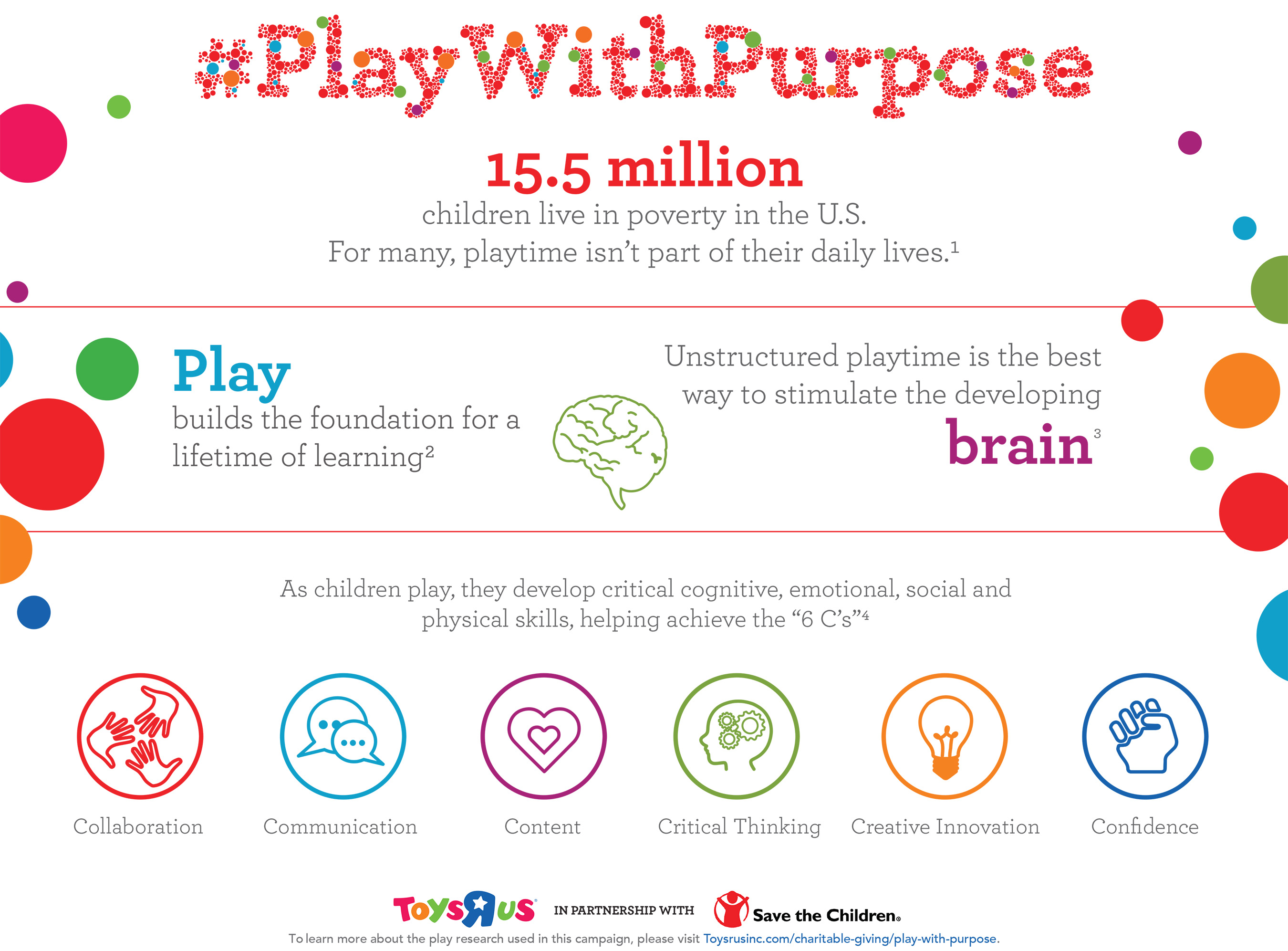 *Visit http://www.toysrusinc.com/charitable-giving/play-with-purpose/works-cited for a full list of citations and resources.