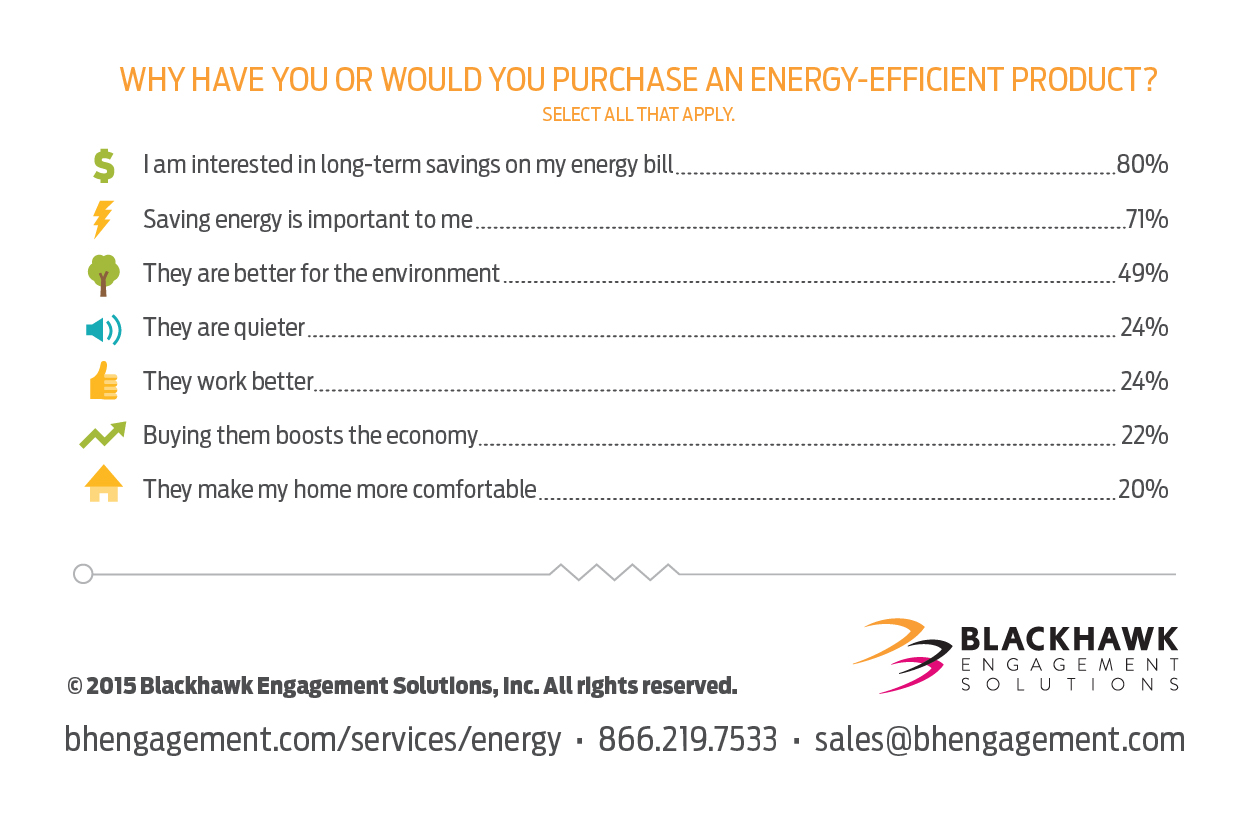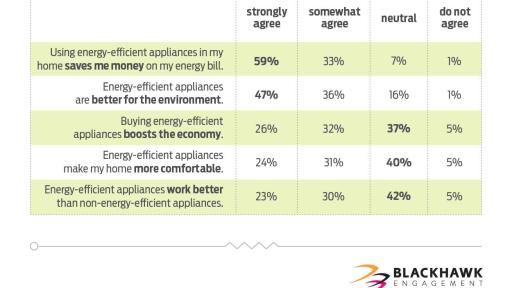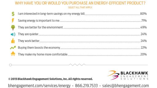 “Utility companies and retailers should place a larger focus on educating consumers on the many incentives and rebates available on energy-efficient products,” said Rodney Mason, global vice president of marketing with Blackhawk Engagement Solutions, an international incentives and engagement company. “Although consumers feel good about doing the right thing for the planet, today’s shopper is most highly motivated by price and value. The more consumers understand the many ways to save money by purchasing efficient products, the bigger the opportunity for increased sales and adoption.”