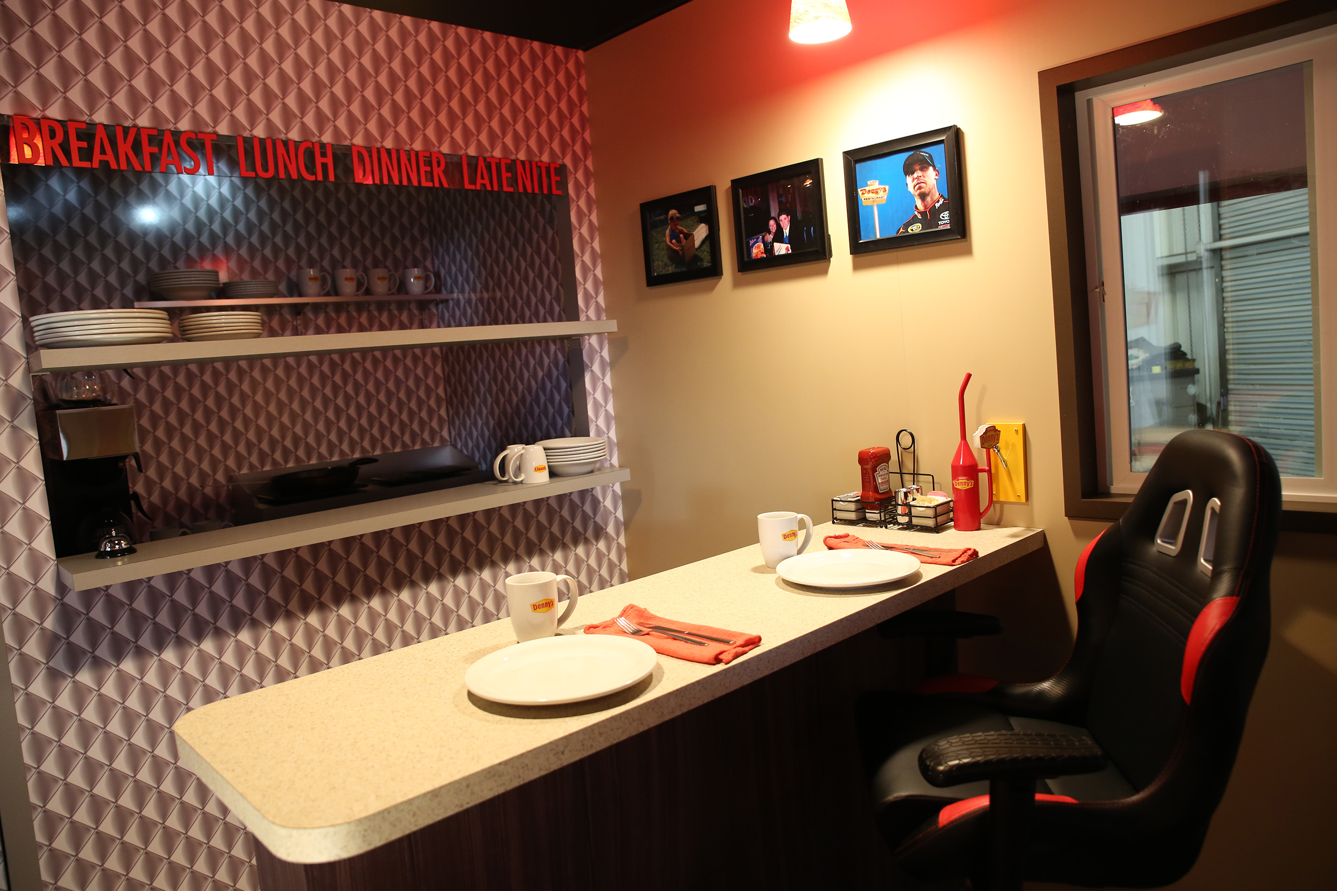 Since Hamlin loves Denny’s so much, “Denny’s Denny’s” was built exclusively for him to ensure he has his favorite diner wherever he goes. The mobile “Denny’s Denny’s,” which features an authentic Denny’s booth, Hamlin’s famous fork collection and syrup gas tanks, will join him on the road as he competes in some of the biggest NASCAR® Sprint Cup Series races of the season at Texas Motor Speedway, April 11; Charlotte Motor Speedway, May 24; Daytona International Speedway, July 5. “Denny’s Denny’s” will also make a pit stop at the Short Track Showdown at South Boston Speedway on April 23, where an all-star cast of NASCAR® and late-model drivers will compete to raise funds for the Denny Hamlin Foundation to benefit Cystic Fibrosis research. Fans can stop by “Denny’s Denny’s” during the races where Hamlin will appear at select times to hand out signed autographs and various giveaways.