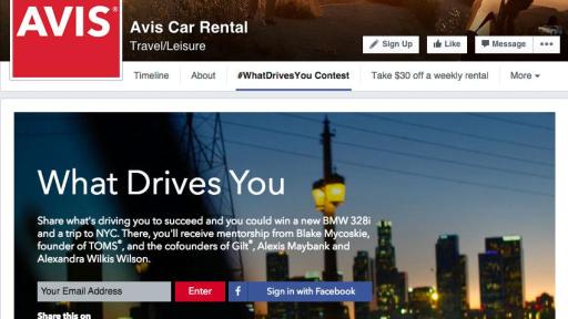- A Facebook sweepstakes at https://www.facebook.com/avis