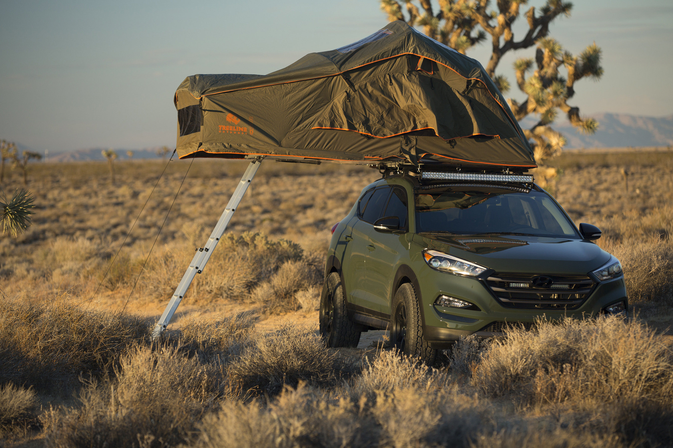 John Pangilinan continues to blur the lines between lifestyle and automotive with his 2016 Tucson Adventuremobile. The vehicle blends Hyundai’s new crossover platform with a passion for the great outdoors, perfect for the weekend getaway. The most obvious addition was a Treeline Tamarack roof-top tent, with ample room to sleep two campers. The exterior was beefed up with the addition of an Aries bull bar and side steps, Rigid Industries LED lights, a custom 1.5-in. suspension lift for extra ground clearance, and Toyo Open Country A/T II tires with RAYS Gram Lights 57DR wheels to provide the extra grip needed for the occasional off-road excursion.
