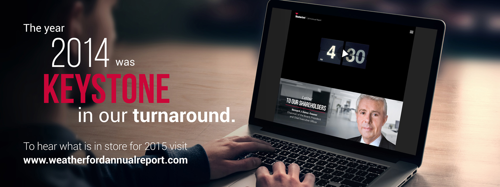 Weatherford International plc (NYSE: WFT) today informs its shareholders that it has published its 2014 Annual Report. The digital and interactive report discusses how Weatherford effectively implemented a disciplined strategy to deliver on substantially all of its 2014 objectives, resulting in a keystone year in the Company's turnaround.