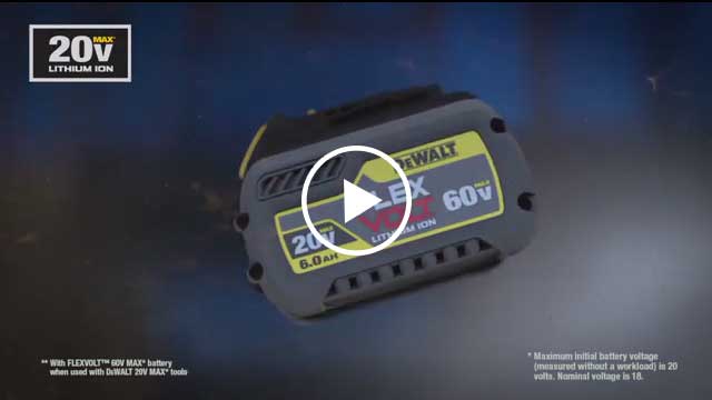 The key to this technology is the ability of the FLEXVOLT™ batteries to switch between DEWALT tools of varying voltages (20V MAX*, 60V MAX* and 120V MAX*). The FLEXVOLT™ batteries automatically change voltage depending on whether they're being used in a 20V MAX* or 60V MAX* tool. Two FLEXVOLT™ batteries (of same amp hour) together power the new DEWALT 120V MAX* tools. This means that high power tool applications that previously could only be accomplished by corded tools, can now be performed with the DEWALT FLEXVOLT™ system of cordless tools. As a result of this advanced battery technology, jobsites can now fully transition from corded to the freedom of cordless.