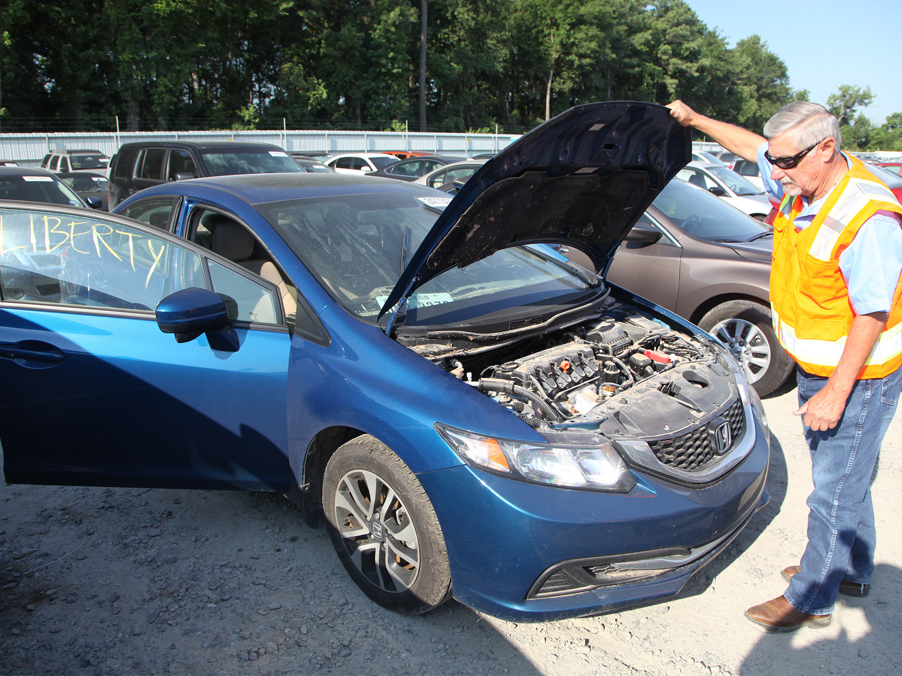 After a disaster, the National Insurance Crime Bureau (NICB) works with its member companies, law enforcement and companies like Copart to identify the vehicles that have had an insurance claim filed and to process them for sale. All of the cars will be retitled with the Department of Motor Vehicles and the new title will indicate the fact that the vehicle has been flood damaged. Most of the vehicles are sold to parts companies who will dismantle them and re-sell usable parts that were not damaged by the flooding.