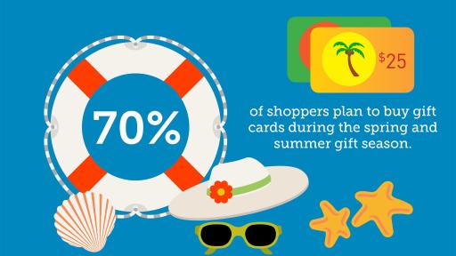 - Gift cards’ popularity continues to grow: Just last year, two thirds of shoppers planned to buy gift cards during the spring and summer gift season, and that number has grown to more than 70% this year. Additionally, 82% of shoppers plan to give the same or more gift cards this spring and summer gifting season versus last year’s. The most popular spring and summer occasions for giving gift cards include birthdays (55%), graduations (21%), Father’s Day (16%), and weddings (12%).