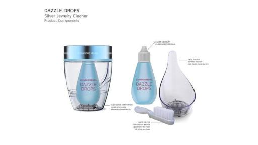 Dazzle Drops Advanced Jewelry Cleaner and Dazzle Drops Silver Jewelry Cleaner are sold separately. Each cleaner comes with a clear acrylic Cleansing/Rinsing Container, a great-grip Jewelry Cleaning Brush and an easy-to-use Dipping Scoop to lower jewelry into the Cleansing/Rinsing Container.
