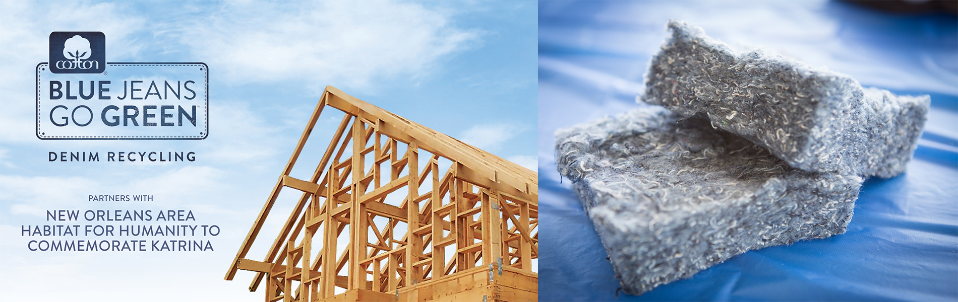 Since 2006, the Cotton Incorporated Blue Jeans Go Green™ program has helped rebuild communities by providing hundreds of thousands of square feet of UltraTouch™ Denim Insulation to Habitat for Humanity affiliates around the country. Over that time span the program has diverted more than one million pieces of denim --- roughly 600 tons --- from landfills, and created approximately two million square feet of insulation for communities in need.