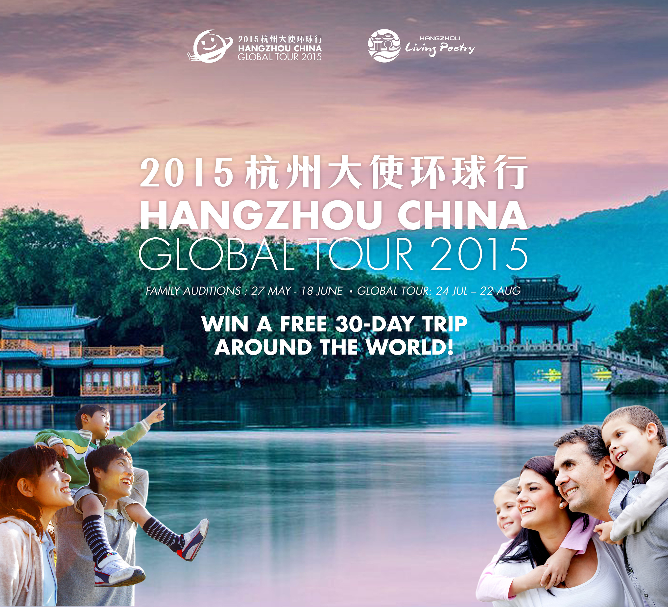 New York / June 3, 2015 / PR Newswire – The Hangzhou Tourism Commission (HTC) announces the official launch of a social media campaign called, Global Tour 2015, which will send one U.S. and one Chinese family, along with a media “Storyteller,” on a free 30-day trip around the globe from July 24th through August 22nd.