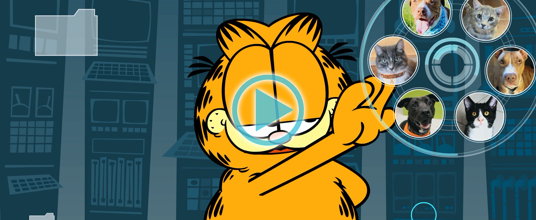 The videos feature Garfield talking directly to the screen encouraging viewers to go online and see what shelter pets are available in their area. In addition to the videos, the Paws, Inc. team has created a series of animated social graphics depicting Garfield and Odie asking viewers to visit the Shelter Pet Project website. At TheShelterPetProject.org, prospective adopters can browse through a database of dogs and cats available for adoption in their area and learn more about misconceptions around shelter pet adoption as well as about the process of adopting a pet.