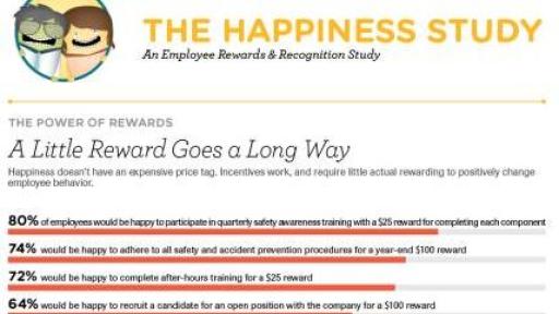 “The Happiness Study” from Blackhawk Engagement Solutions examines what impacts employees’ happiness at work, which types of recognition and rewards work best for motivating them, and what additional engagement activities employees would be willing to participate in, if properly incentivized. The survey, conducted in April 2015, questioned more than 1,800 employed Americans, including both salaried and hourly paid employees.