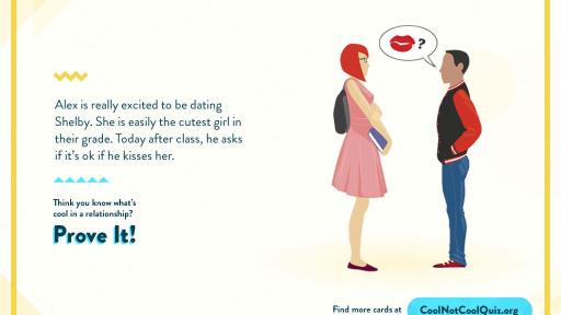 With a focus on reaching teens on their mobile devices, the launch includes a new mobile-first website that uses interactive quiz cards to help teens identify inappropriate relationship interactions and empowers them to “draw their own digital line.” Created by Archrival, a creative agency expert in youth culture, based in Lincoln, Nebraska, CoolNotCoolQuiz.org outlines various dating scenarios and asks teens to decide what they think is “Cool” or “Not Cool” by swiping left or right. In partnership with Kik, the popular chat network with over 200 million users, the campaign will be featured as a Kik Promoted Chat account, where teens can opt-in to engage in customized conversations around appropriate communications in relationships. To chat with the campaign, teens can find “thatsnotcool” on Kik. In an effort to further engage teens nationwide, the campaign will also be extended across Facebook, Instagram, Twitter, Google+, and Tumblr. HelpsGood, a digital agency in Los Angeles, is managing the communities on social media.