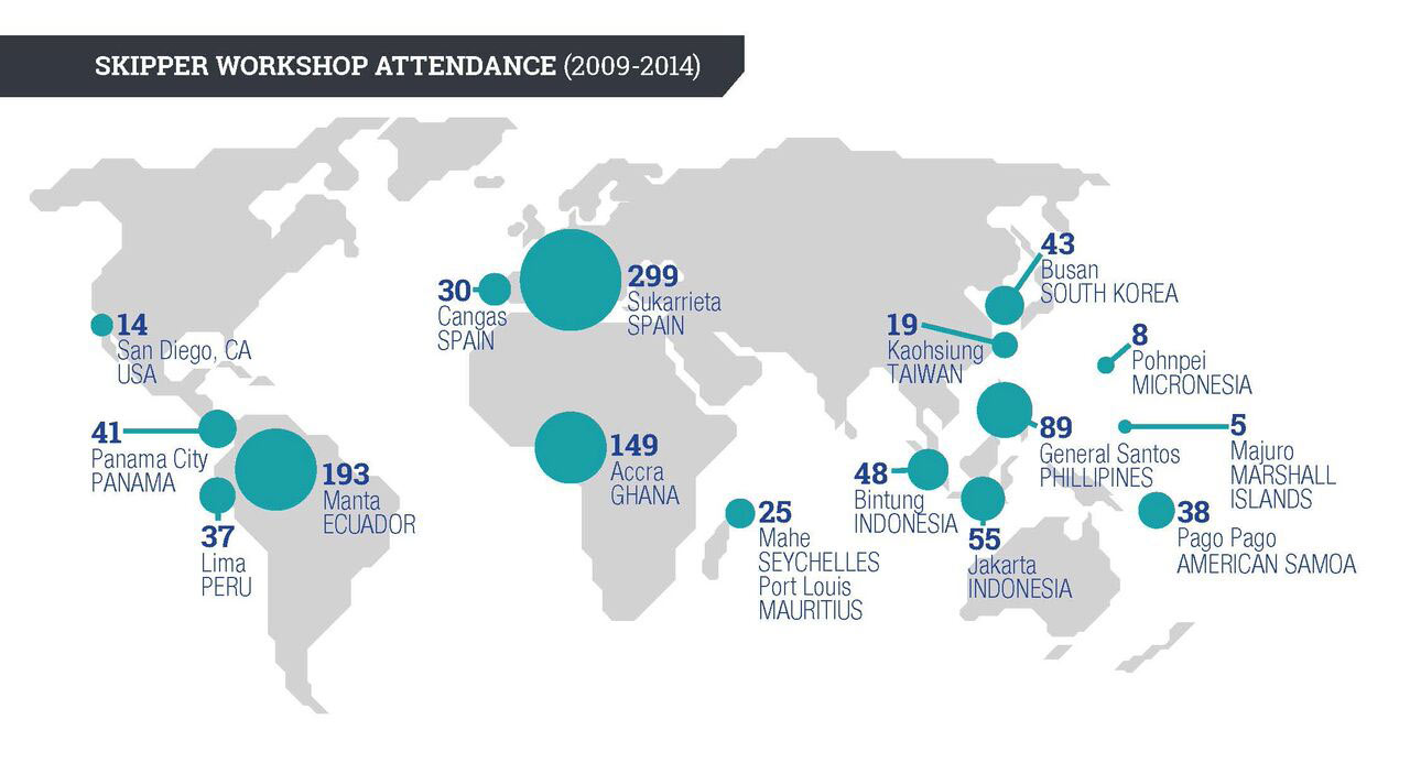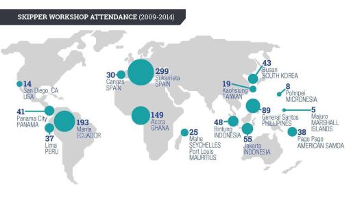 - In 2014, the total number of participants attending ISSF’s Skippers Workshops – where ISSF-sponsored scientists and presenters dialogue with fishers regarding sustainability best practices – climbed to more than 1,000 individuals.