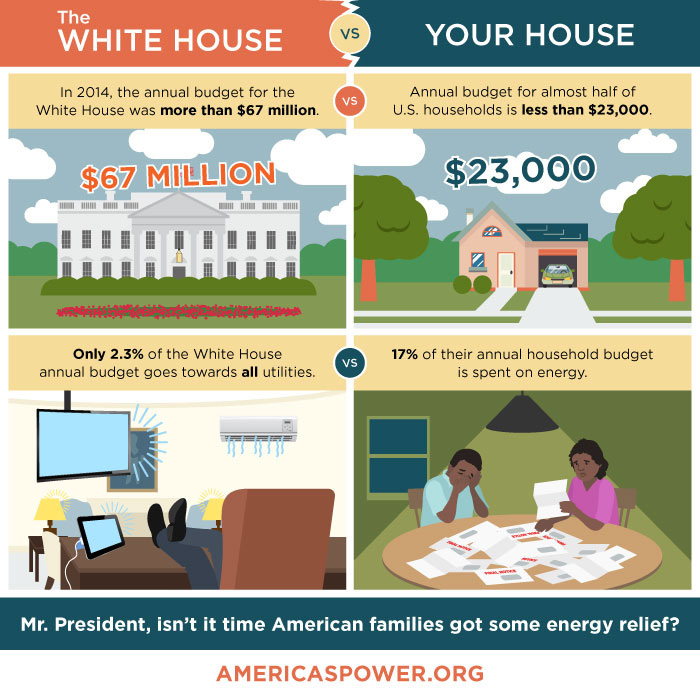 To understand how everyday American’s household budgets and energy costs stack up against the White House’s, ACCCE created a video and infographic. Watch the video. Explore the infographic. Learn the truth about how American’s energy costs stack up against the White House’s.
