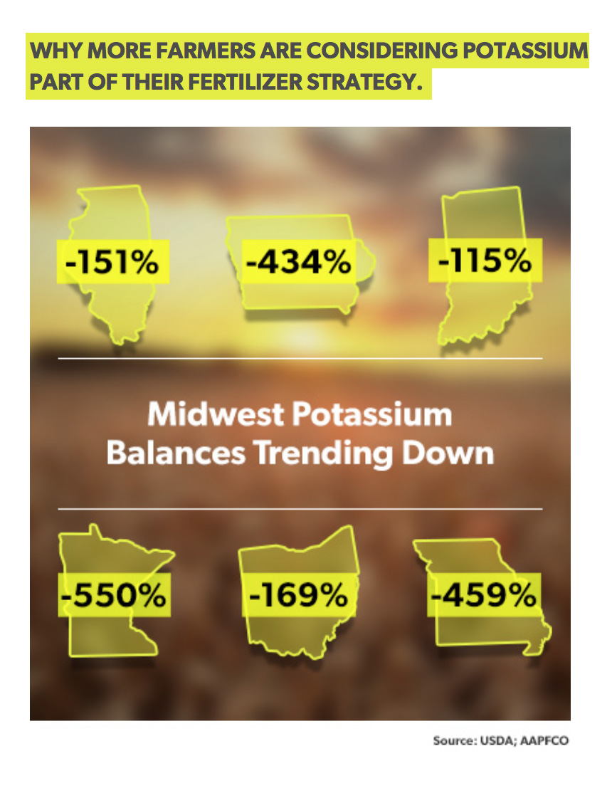 This first-of-its-kind analysis aggregated existing nutrient removal records, fertilizer consumption information and manure data from the USDA and The Association of American Plant Food Control Officials (AAPFCO) to better understand regional soil conditions and what farmers should prepare for in the future. The past several years have seen impressive crop yields, providing farmers with increased revenue and an encouraging outlook for years to come. However, high yields come at a price that can easily be overlooked – increased nutrient removal.