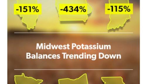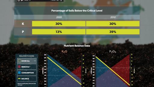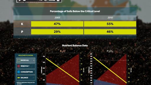 In Iowa for example, the nation’s leading producer of corn and soybeans, potassium balance has decreased a staggering 434% since 1975. This occurred as potassium removal trends increased 35% and fertilizer sales decreased 7%. In addition, IPNI reported the percentage of soils below the critical level, a key measurement in evaluating soil productivity, increased from 47% in 2005 to 55% in 2010.