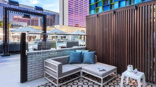 The LINQ Hotel offers a chance to be at the pool all day long with Deluxe Poolside Cabana rooms which are standard appointed guest rooms with the addition of private patios complete with outdoor sectional seating and LCD TV with direct access to The LINQ Pool. Picture it like your own day club experience while you and your guests soak up the sun with waitress service from the nearby pool bar. Guests of the cabana rooms also have the added luxury of checking-in through VIP check-in.
