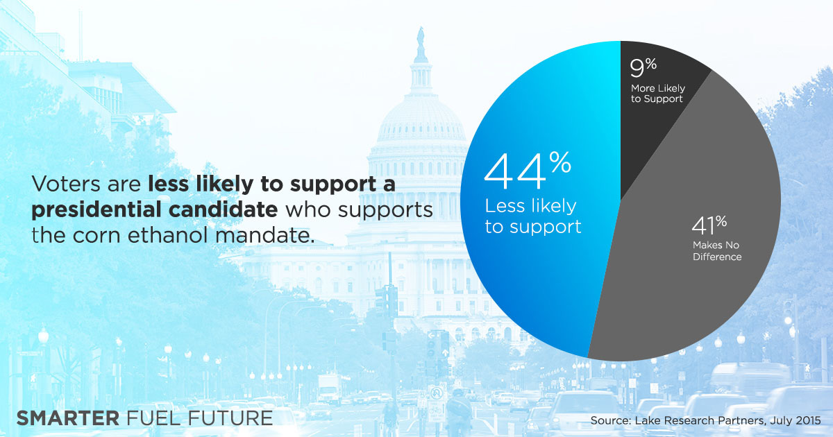 “Voters across party lines express grave concerns for the impacts of the corn ethanol mandate from the Renewable Fuel Standard that touch many parts of their lives from the cars they drive to the food they buy,” said Celinda Lake, president of Lake Research Partners. “They strongly support bi-partisan proposals that would reduce the impact of corn ethanol, and particularly support the Environmental Protection Agency reducing the amount of corn ethanol required by law.”
