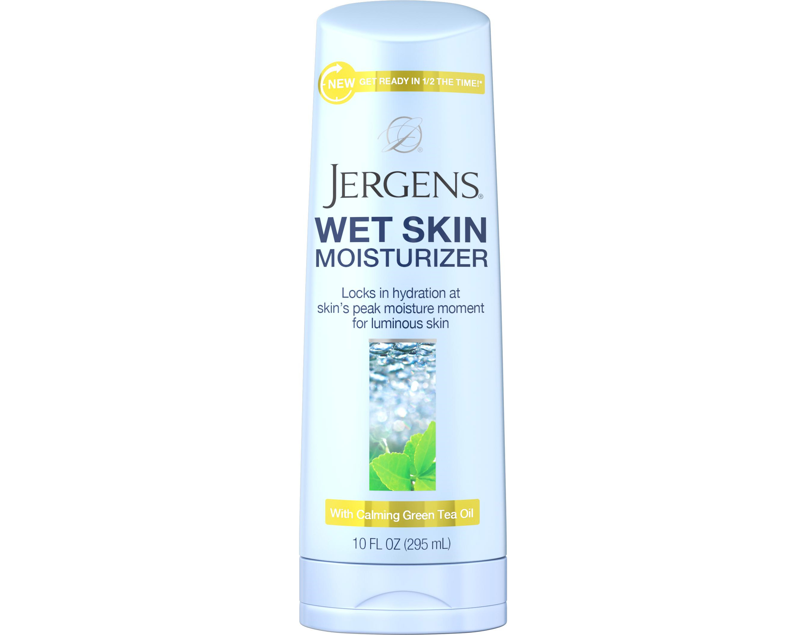 As for Jergens® Wet Skin Moisturizer? It’s a game-changing way to quickly and intensely hydrate skin. New Jergens® Wet Skin Moisturizer glides onto wet skin and instantly absorbs for twice the moisturization in half the time*. There’s no need to wait for skin to dry before applying or to rinse away sticky residue. The revolutionary formula goes –and stays—on your skin and not down the drain. With this one-of-a-kind lotion, just apply the product before you dry for a quicker way to moisturize. The unique formula blends effortlessly with the water from your shower to instantly lock in essential hydration. This helps you take advantage of the peak moisture moment, when your skin is damp and most receptive to hydration.