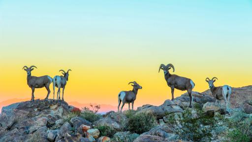 Second place went to Koustubh Kulkarni of Johnson City, TN for his photo along the 49 Palms Trail at Joshua Tree National Park in California. The shot catches five Big Horn sheep, looking almost posed, against a vibrant orange, yellow, pink, and blue sunset.