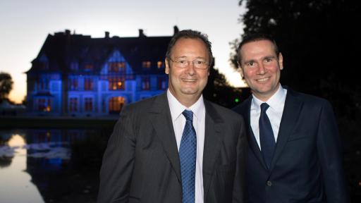 Guests were treated to a spectacular surprise at the start of the evening when two fighter jets roared across the Cognac sky, followed by three planes from the “Cartouche Doré”, a squadron of seasoned flight instructors from the French air force flight academy in Cognac. The squadron is considered the “little brother” of the famed Patrouille de France aerobatics team, which put on a demonstration for guests during the 20 May event in Versailles. Two Cap Ten aerobatic planes then wrote out the number “300” in white smoke before dropping three parachutists – carrying some flags marked with Martell colours – who joined the guests and presented César Giron & Alexandre Ricard with bottles of the limited edition cognac given to guests as a gift.