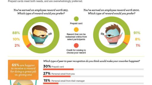 - Prepaid cards satisfy Millennials’ needs for instant gratification: Millennials appreciate vast choice and instant gratification, making reward selection convenient for employers. Prepaid cards meet both needs, and are overwhelmingly preferred by Millennials and other employees alike. A staggering 91 percent of Millennials said if they were to earn a reward worth $100, they would want it in the form of a prepaid card versus a reward that could be redeemed online from select merchants or credit for a reward catalog.