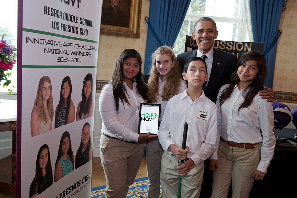 Over the years, the Verizon Innovative App Challenge has garnered a track record for uncovering life-changing app ideas that students had conceptualized. For example, an all-girls team of 6th graders from Resaca Middle School in Los Fresnos, Texas won the App Challenge in 2014 for their app idea to help the blind navigate. Inspired by their visually-impaired classmate, the Hello Navi App earned the girls a visit to the White House Science Fair where they met President Obama and Bill Nye, the Science Guy. Now 8th graders, the girls recently sold their app to Visus Technology which is working to expand Hello Navi for use on college campuses nationwide.