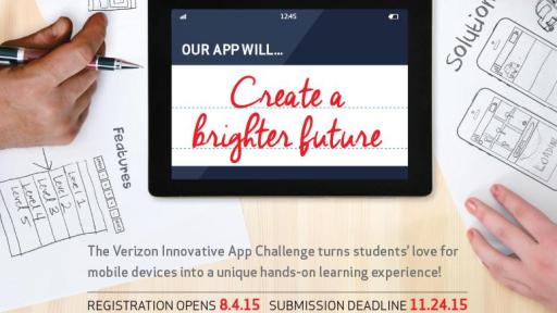 PRNewswire, Basking Ridge, NJ August 13, 2015 – The Verizon Innovative App Challenge - the no-coding-skills-needed contest that gives middle and high school students a chance to bring their problem-solving app ideas to life - is back! In its fourth year, the App Challenge calls students to gather teams, dream up ideas, and create concepts for mobile apps that could solve problems in their schools and communities.