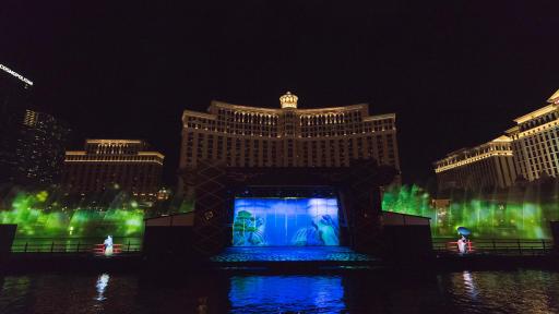 - Water Screen Projection – teamLab, a group of technology specialists from various fields of the digital society, will be projecting delicate yet dynamic CG images on the vast Fountain screen that are based on original images drawn by Kabuki artists. The beauty of Kabuki will unfold over Lake Bellagio using teamLab’s digital technology and Panasonic’s 3-Chip DLP™ Projector PT-DZ21K, which realizes a brightness of 20,000 lumens.