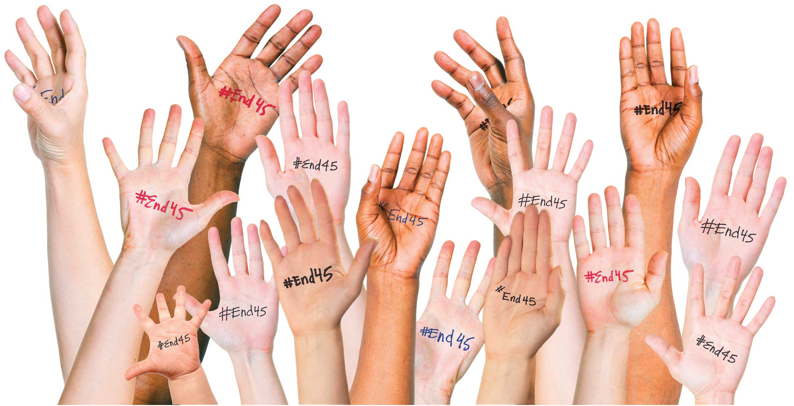 People around the country have the chance to increase awareness of this critical issue and make a difference with just a photo. To get involved, people should take a photo of their hand raised with “#End45” written on the palm and simply share it on their Facebook, Instagram and/or Twitter accounts using the hashtag #End45.