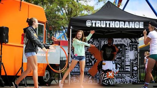 Tour stops feature the iconic orange “truth truck” which is rigged with a DJ booth and dance floor creating a truth “zone” offering: