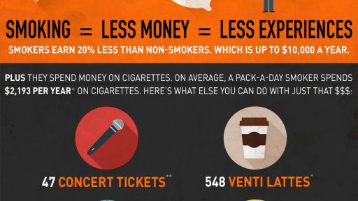 Research shows that smokers earn 20 percent2 less than non-smokers, and young adult smokers miss out on up to $10,000 each year1. Teens know smoking is bad for their own health and those around them, but most don’t know that it also hurts their wallet. truth, the award winning youth tobacco prevention campaign, is using this surprising, yet important fact to empower smokers and nonsmokers alike to be the generation to end tobacco use for good.