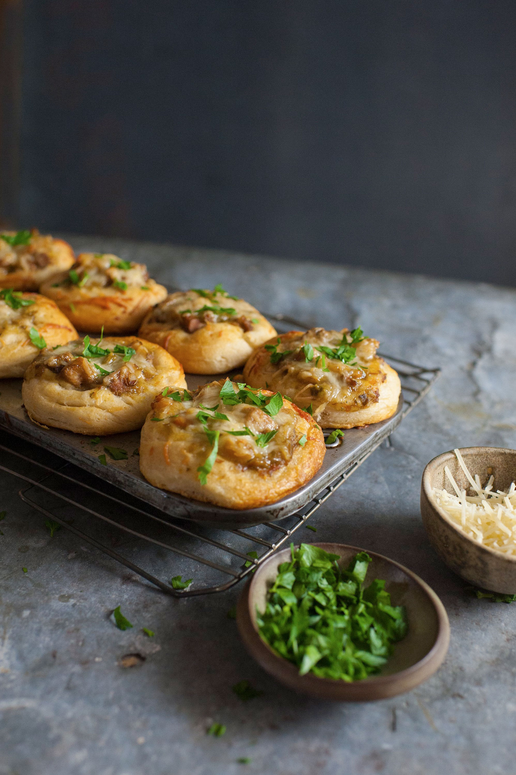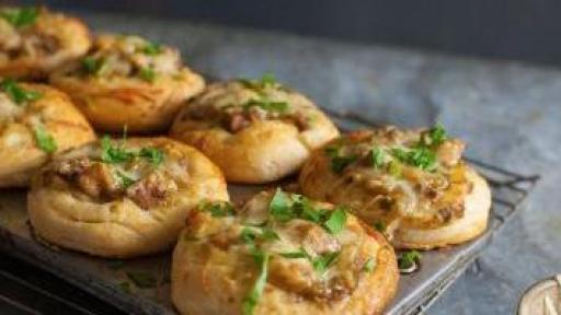Turn biscuits into Chicken Stew Biscuit Cups with White Chicken Stew with Savory Herbs. An easy weeknight meal that is full of flavor and fun to serve family and friends. Simply place refrigerated biscuits in muffin cups and press down, spoon in chicken stew and sprinkle with parmesan cheese and bake. For a little color, top with parsley and serve.