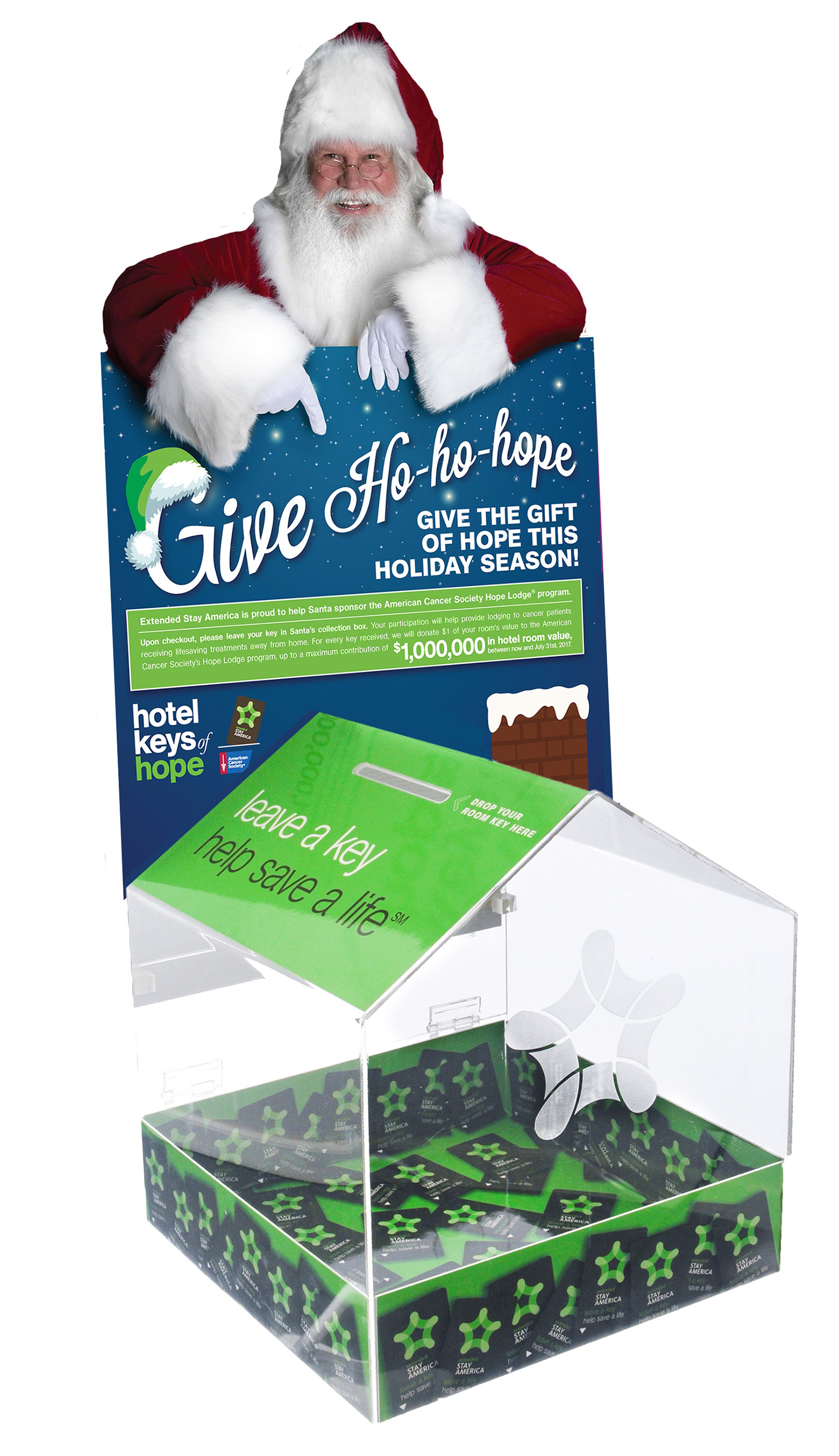 As his first order of business, Santa will serve as the brand’s holiday Goodwill Ambassador -- in its latest “Give Ho-Ho-Hope” campaign. Santa will help bring awareness to the brand’s exclusive relationship with the American Cancer Society and the hotel room donation program Hotel Keys of Hope℠, which provides free and discounted rooms to cancer patients traveling for potentially lifesaving treatments. Encouraging travelers to spread a bit of holiday cheer, Santa Claus asks Extended Stay America guests to give hope through the brand’s “Hotel Keys of Hope,” Leave a Key Help Save a Life℠ program. Guests can participate by leaving their room keys in designated collection boxes conveniently located in their 629 hotel lobbies. For every key left in the Hotel Keys of Hope collection box, Extended Stay America will donate $1 of hotel room value to the American Cancer Society Hope Lodge® program.