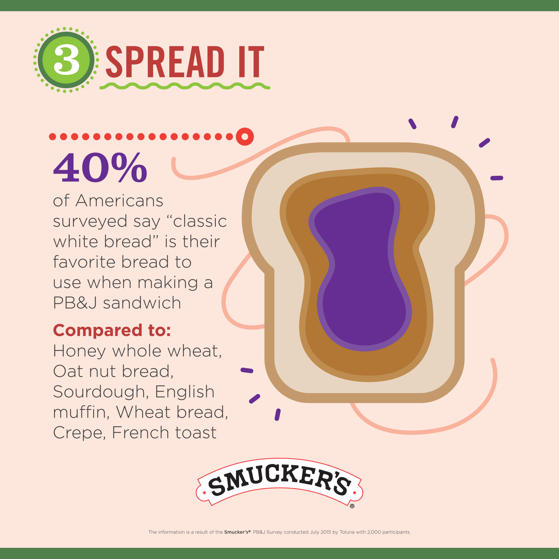 Create your perfect PB&J sandwich using one of Smucker’s Fruit Spreads and JIF Peanut Butter.