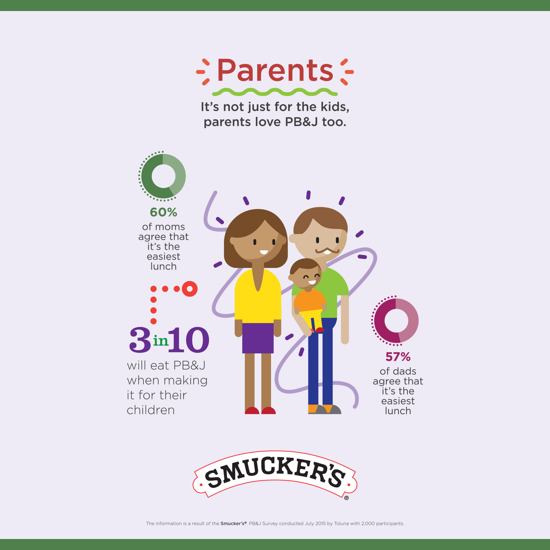 - Nearly 60% of parents say it’s the easiest lunch and three out of 10 eat a PB&J sandwich themselves when making one for their child.