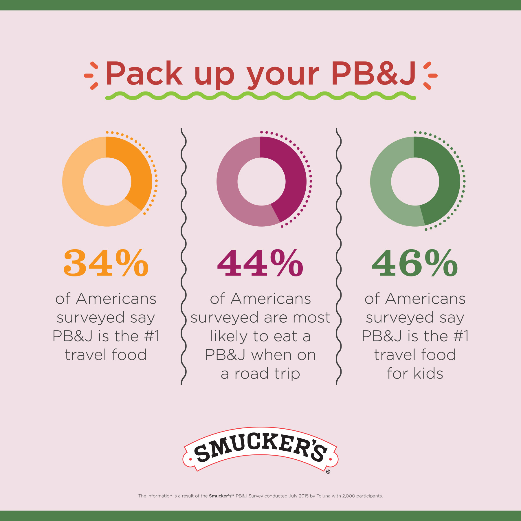 Findings also revealed that PB&J is beloved for being great anytime, anywhere, making it an easy option when traveling. One-third of Americans agree that PB&J is the best travel food and nearly half of Americans surveyed agree that PB&J is the best travel food for kids.