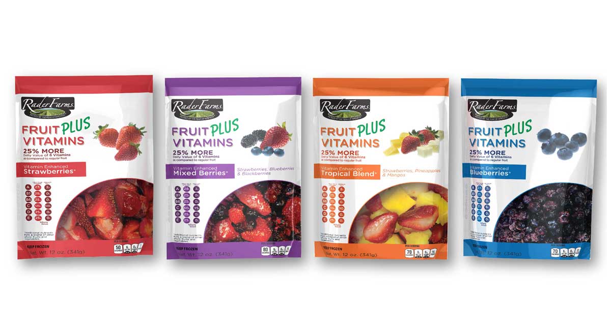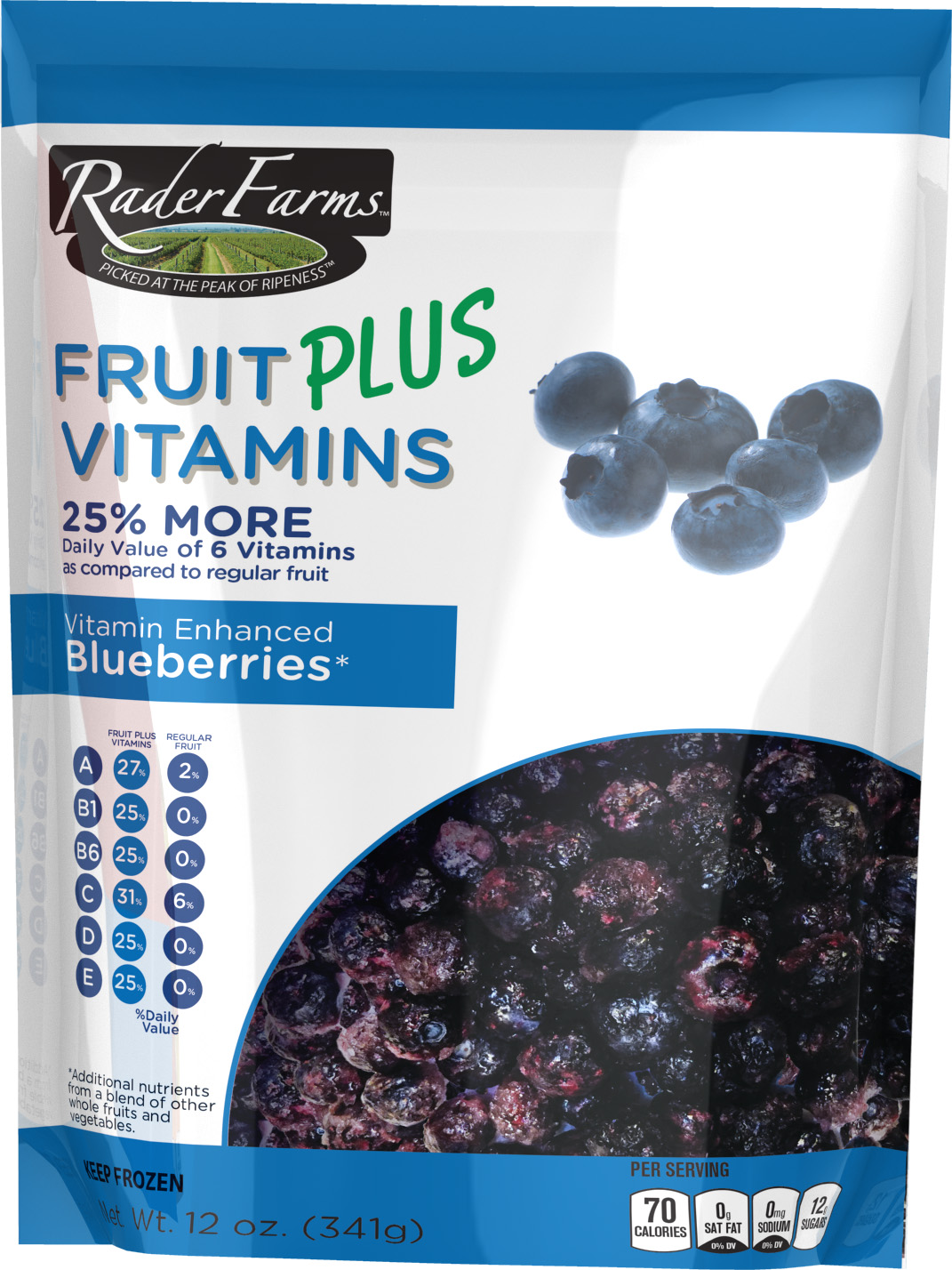 Health conscious consumers who have struggled to meet their daily required servings of fruits and vegetables—and the vital nutrients that come with—have an easy solution for adding more vitamins to their diet with the introduction of Rader Farms’ Fruit PLUS Vitamins line of enriched berries, arriving in nearly 3,000 new stores across the U.S. this month.