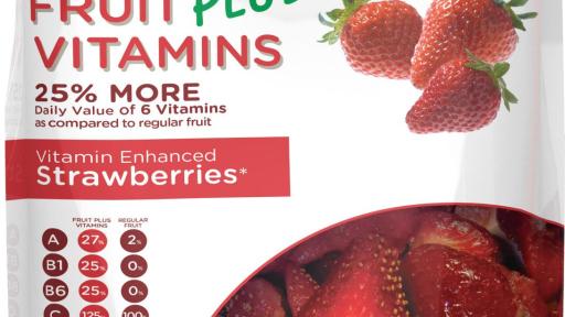 “Fruit PLUS Vitamins takes everything we love about wholesome, delicious frozen berries and makes them even better for you,” said Dan Hammer, senior vice president and general manager of the frozen division at Inventure Foods, Inc. “We add nutrients from fruits and vegetables like shitake mushrooms, mangos, and other real food sources, and we do so without impacting the deliciousness of the native fruit. We believe it opens up a whole new world of possibilities for consumers who are simply looking to get more out of the foods they already love to eat.”