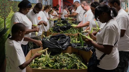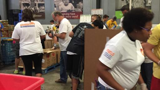 This year’s theme was “Nourish our Neighborhoods.” The message inspired employees to also give more than 360 hours of their own time. They volunteered to pack food in bulk, sort boxes and cans, and to serve meals to families in their hometowns.