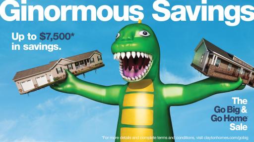 Clayton Homes has been preparing for its huge sale beginning in September, and now they are giving potential homebuyers a great way to save big on the purchase of a new home with its Go Big & Go Home campaign offered in local Home Centers across the country.