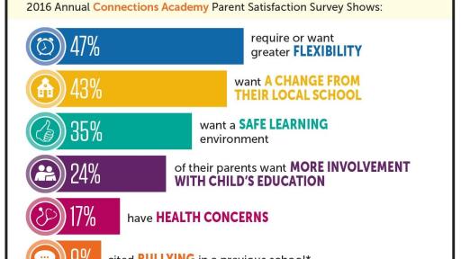Connections Academy, a leading provider of online K-12 schools, released results today from its annual parent satisfaction survey measuring families’ satisfaction with their Connections Academy virtual school experience. The survey also reveals reasons why families are choosing Connections Academy for their children. In the 2015-16 school year, 30 Connections Academy-supported schools in 26 states served students with a top-tier, personalized education.