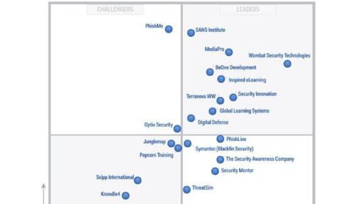 The Magic Quadrant, a comprehensive survey of the security awareness training space, recognized Terranova for both its ability to execute and the completeness of its vision.