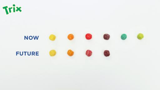While the iconic Trix Rabbit isn’t going anywhere, Trix is removing artificial flavors and colors from artificial sources. This means using ingredients like fruit and vegetable juices and spice extracts such as turmeric and annatto to achieve the fun red, yellow, orange and purple colors while delivering the same great taste that adults and children have always enjoyed.