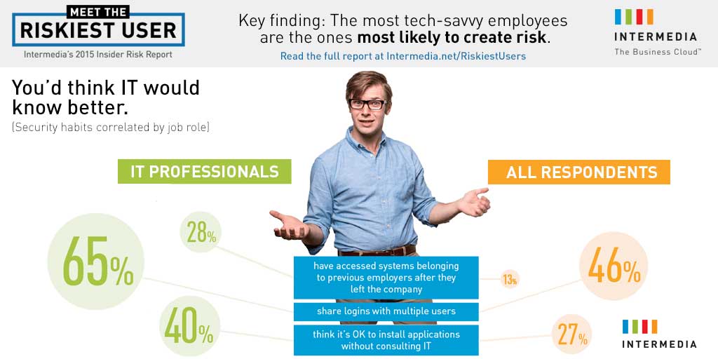 Tech-savvy employees actually create the MOST security risks? #RiskiestUsers Data via @intermedia_net Tweet
