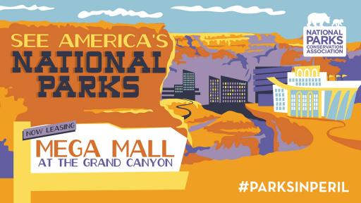 #ParksInPeril, featuring bold illustrations depicting the grim future our national parks could face if action is not taken, is available at npca.org/parksinperil.