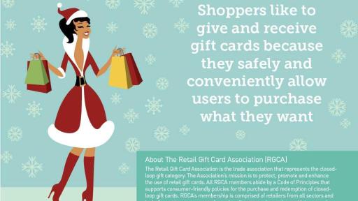 The Retail Gift Card Association is the trade association that represents the closed-loop gift category. The Association’s mission is to protect, promote and enhance the use of retail gift cards. All RGCA members abide by a Code of Principles that supports consumer-friendly policies for the purchase and redemption of closed-loop gift cards. RGCA’s membership is comprised of retailers from all sectors and including restaurants, general merchandise, apparel, sporting and leisure, and non-store retailers. For more information, visit us at www.theRGCA.org.