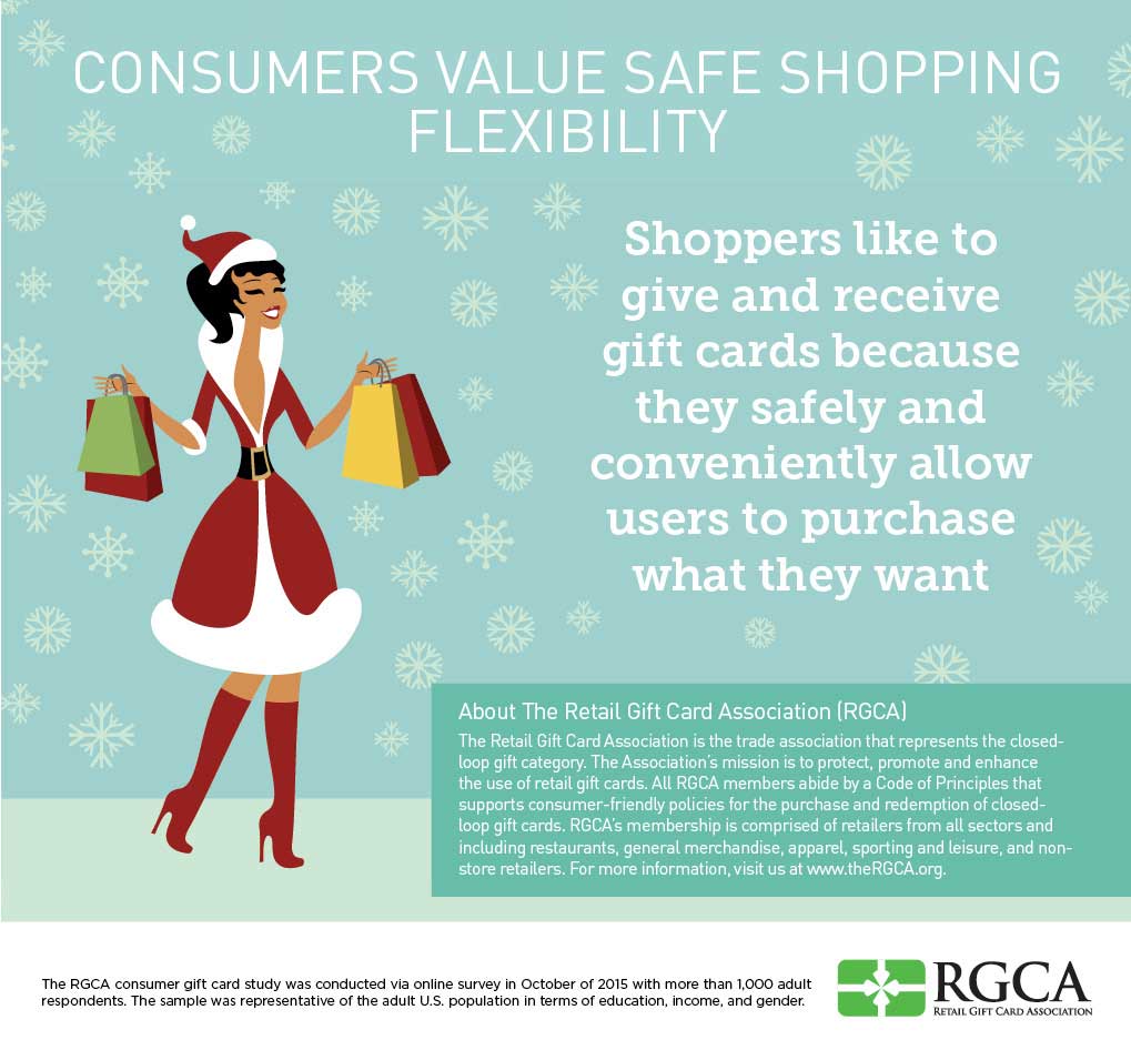 - Consumers value safe shopping flexibility: The number one reason shoppers like to give or receive gift cards is that they safely allow the end users to purchase what they want. Shoppers also like them because gift cards are convenient for the gift giver and recipient alike.