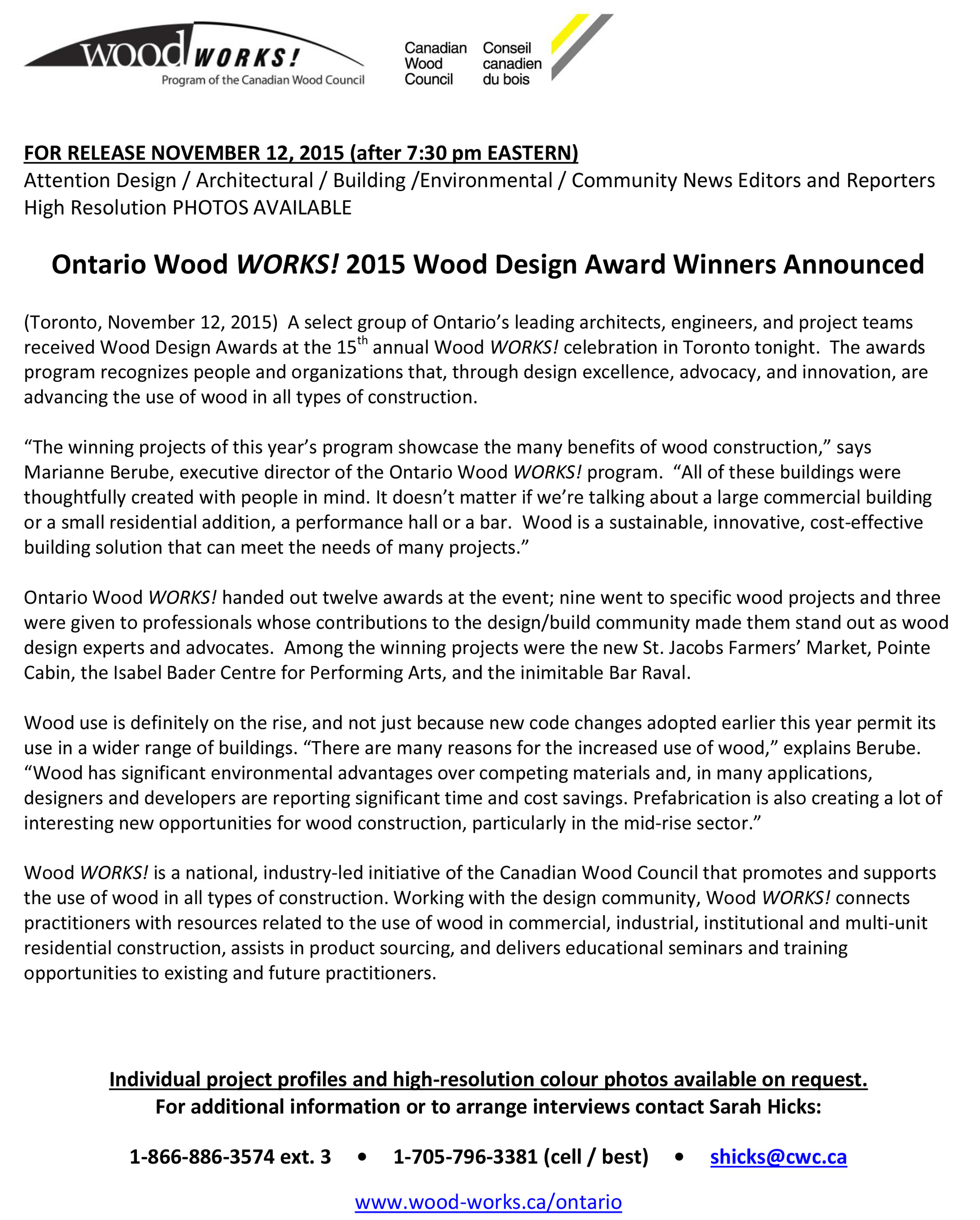 Ontario Wood WORKS! 2015 Wood Design Award Winners Announced