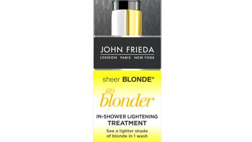 - As with the John Frieda® new in-shower treatment for blondes, it’s designed to be used once a month. Both formulas deliver gentle, all-over permanent lightening without radically altering your colour. Bonus: They’re refreshingly easy to use (no precise application required), with built-in toners to ensure perfect, natural-looking results.