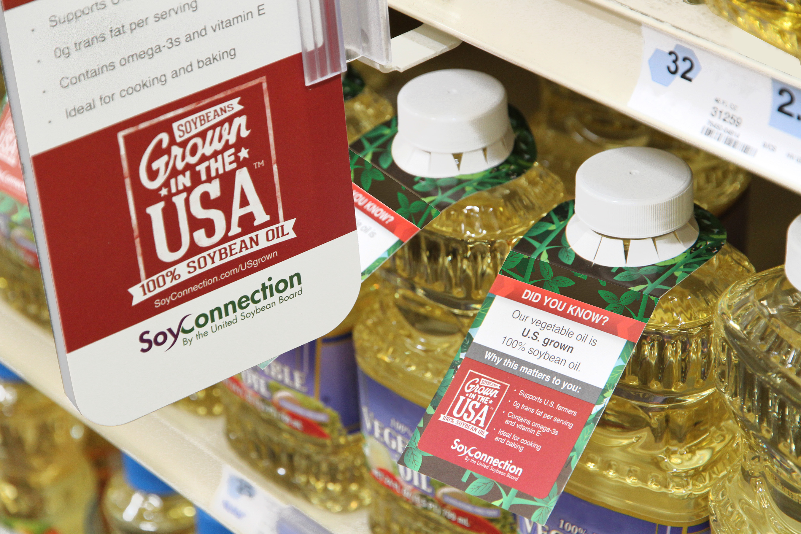 Many retailers sell soybean oil primarily produced with U.S.-grown soybeans. This past summer, USB partnered with a large Midwest grocery retail chain with 200+ stores to emphasize the importance of knowing where food comes from and educate about the benefits of soybean oil. During this promotion, unit sales of the store brand vegetable oil rose more than 27 percent over the same time last year, and shoppers commented that they were more likely to purchase soybean oil knowing it’s a U.S.-grown product.